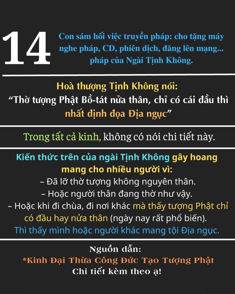 Đi đâu cũng thấy người ta sẽ “đọa Địa ngục” vì lỡ thờ tượng không nguyên thân. Điều này tạo cảm giác sợ hãi, bất an, và khiến hình tượng Phật trở nên đáng sợ thay vì thanh tịnh.